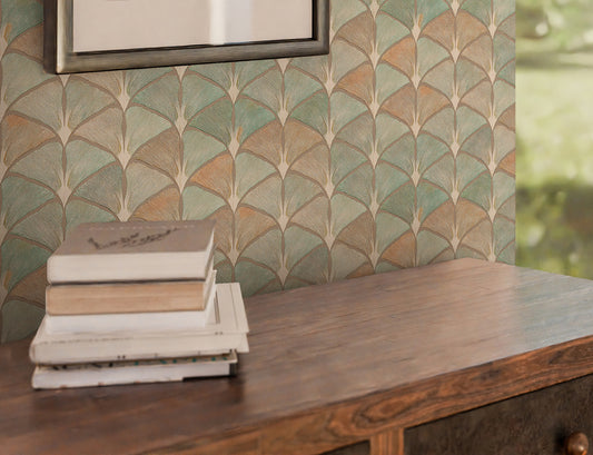 Aubrey Peaches & Green Wallpaper