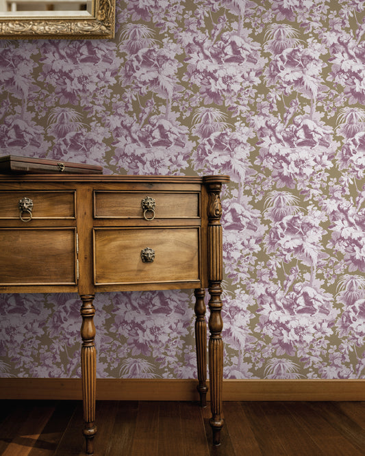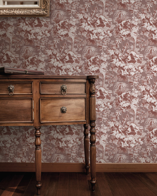 Cherubs Toile Berry Crush Wallpaper