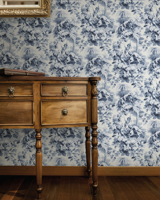Cherubs Toile Ink Wallpaper