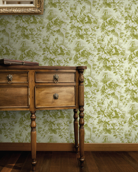 Cherubs Toile Lime Wallpaper