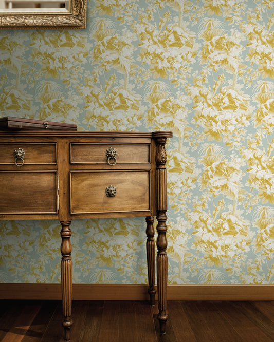 Cherubs Toile Saffron Wallpaper