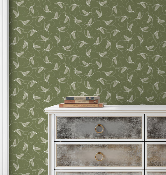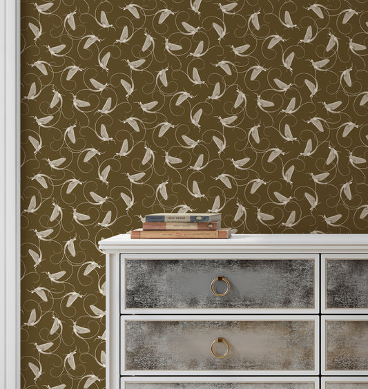 Dance Of The Mayfly Sage on Bronze Green Wallpaper