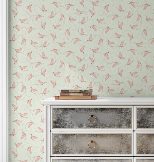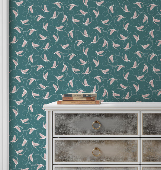 Dance Of The Mayfly Salmon on Teal Green Wallpaper