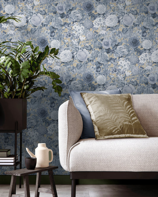 Floribunda Wedgewood Blue Wallpaper