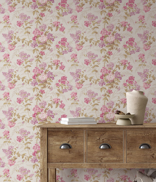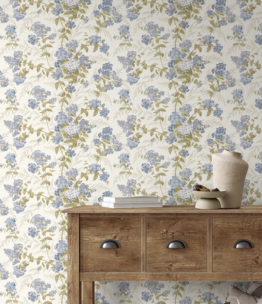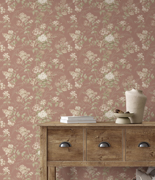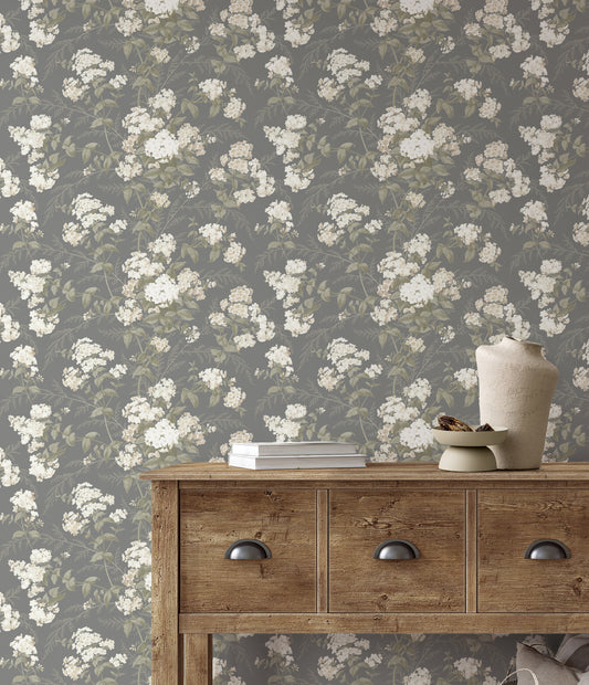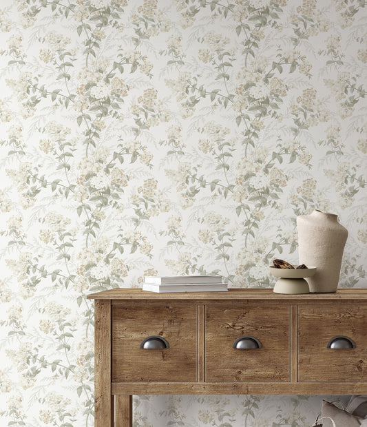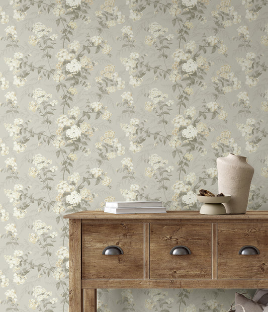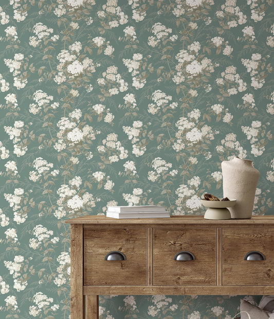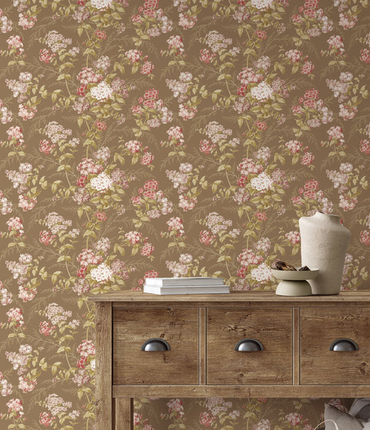 Vintage Floral Faded Yellows on Moss Wallpaper