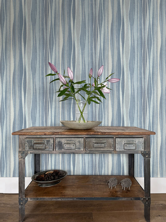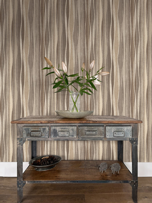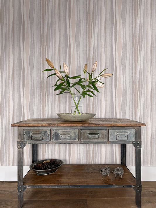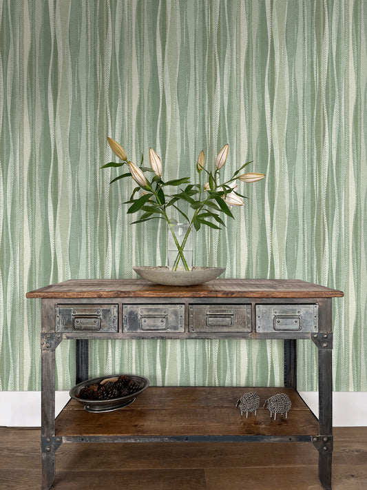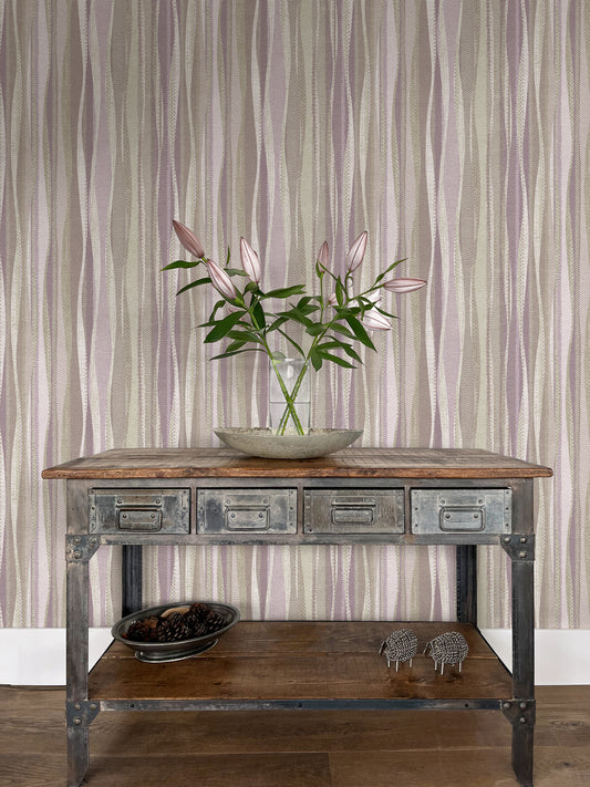 Weavy Stripe Soft Berry on Moss Wallpaper