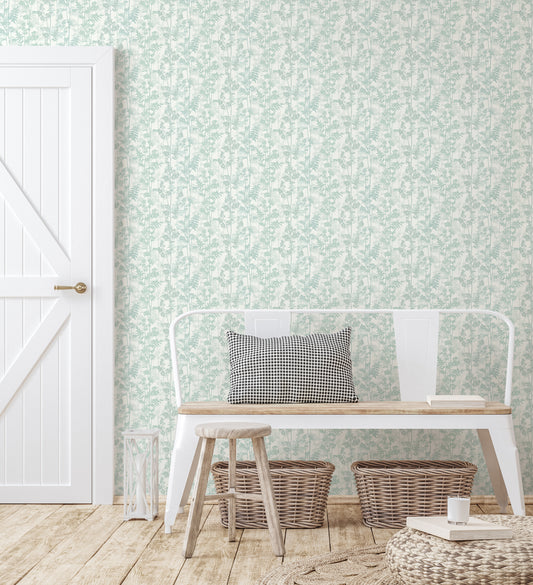 Wild Flower Meadow Fresh Greens & Shell Wallpaper