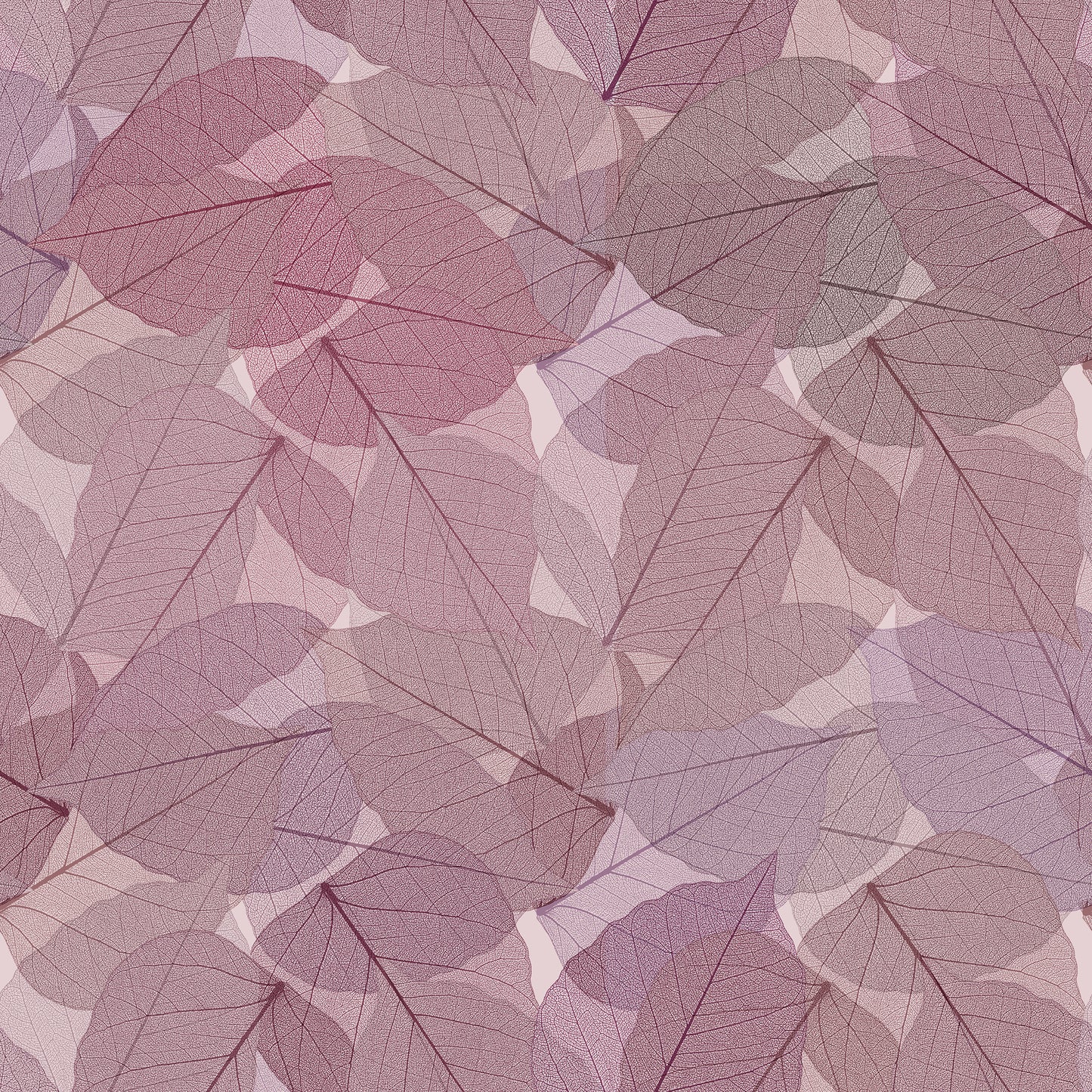 Multi layered skeleton leaves create an all over modern design, highlighting the fascinating delicacy of the leaf structure.
