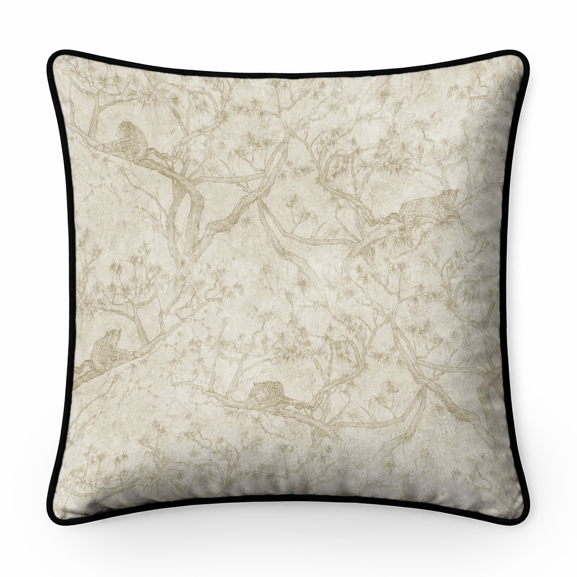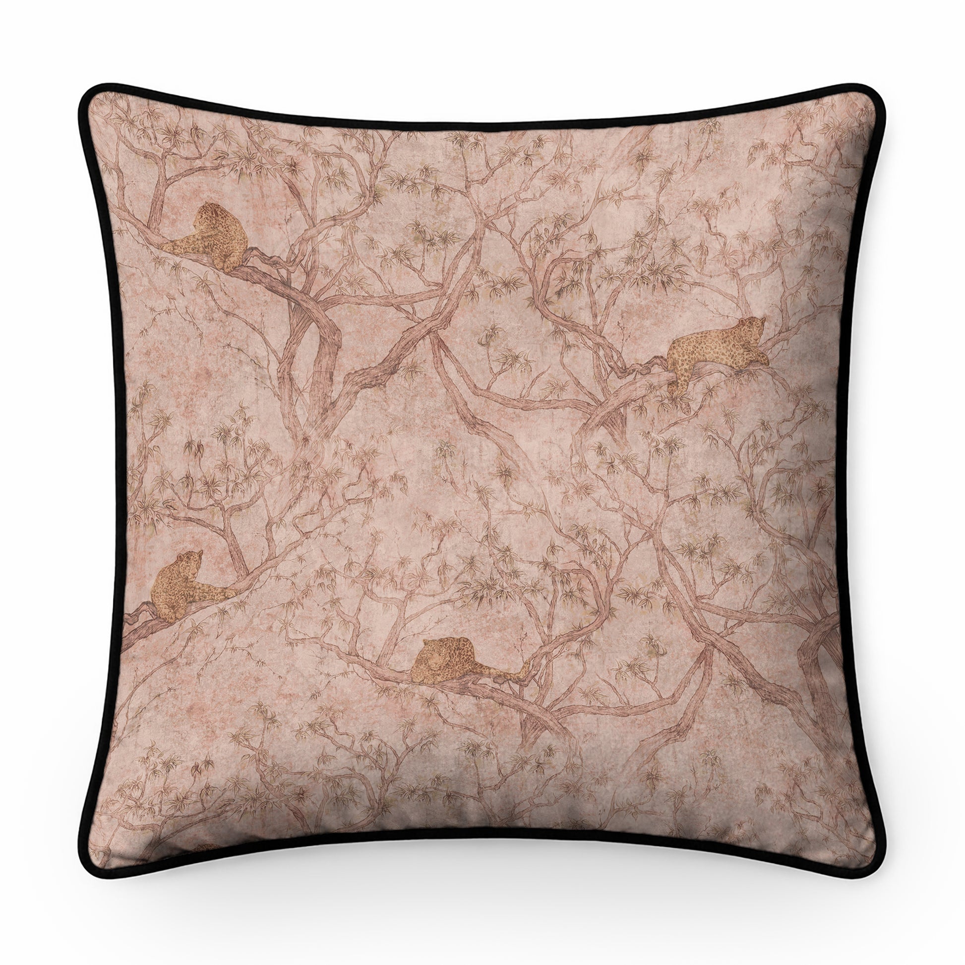 THIS ASIAN INSPIRED DESIGN DEPICTS LEOPARDS IN THE TREES OF THE GRASSLAND SAVANNA, RESTING UP BEFORE THE NEXT HUNT. A DISTRESSED, WORN EFFECT BACKGROUND ADDS ATMOSPHERE.