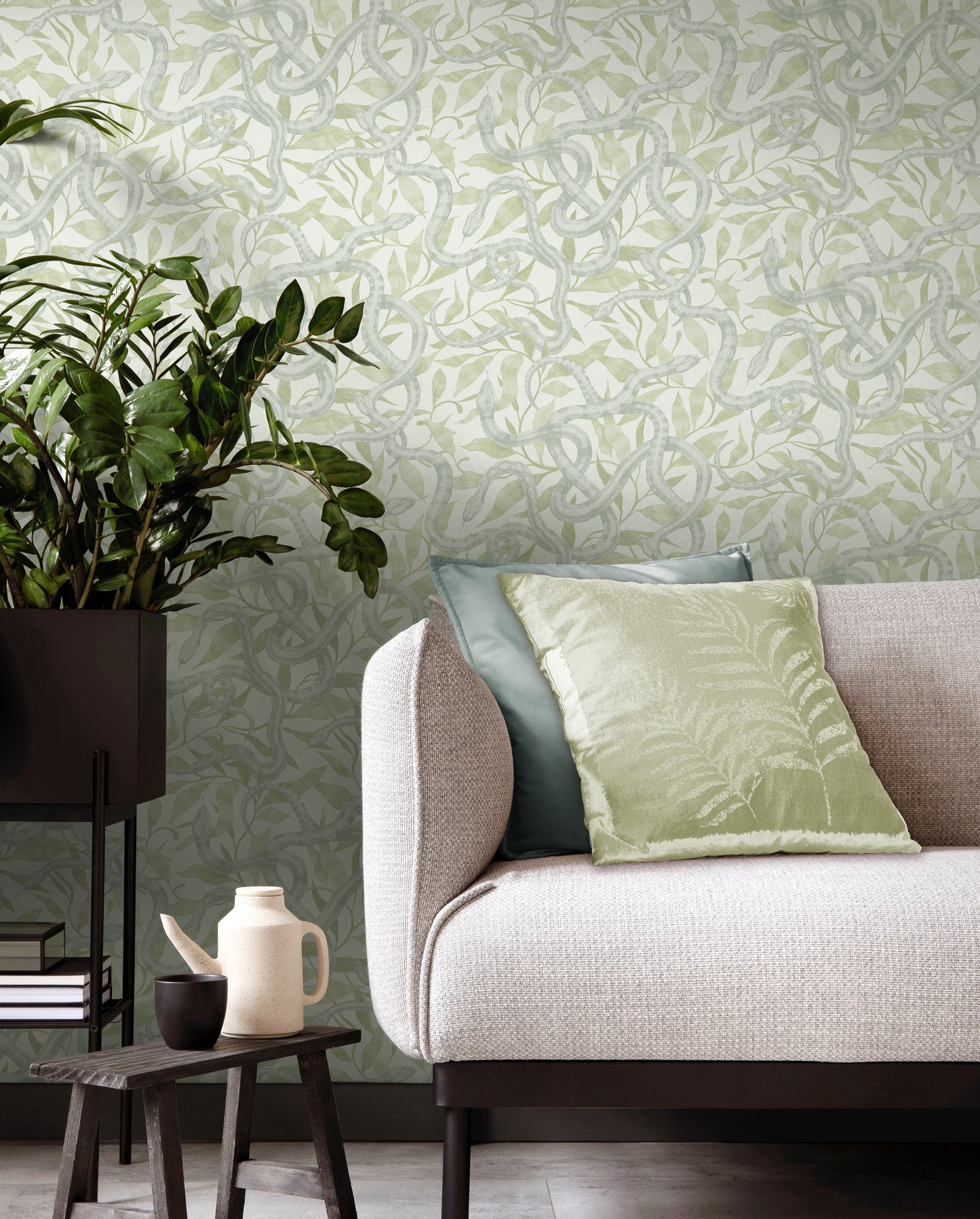 Serpents Soft Teal on Willow Wallpaper